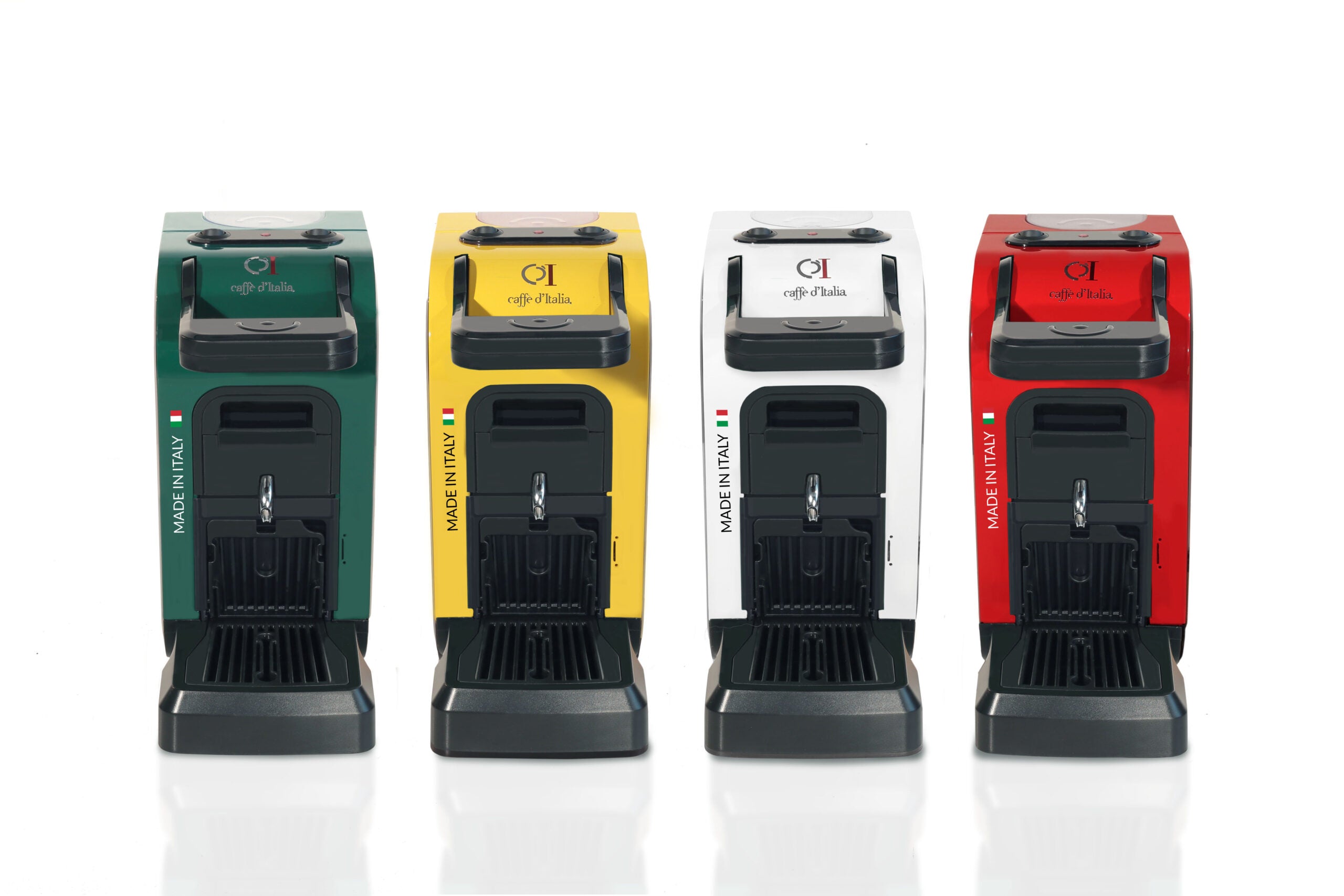 Kompakte Kapselmaschine aus Italien für das Caffè d’Italia System mit automatischer Kapselentsorgung und vielseitiger Getränkeauswahl.