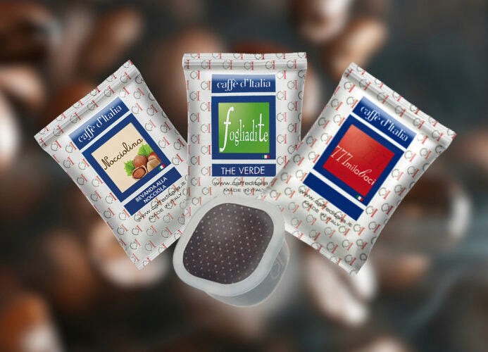 Ausgewählte Kaffeebohnen und Kapseln für verschiedene Systeme.