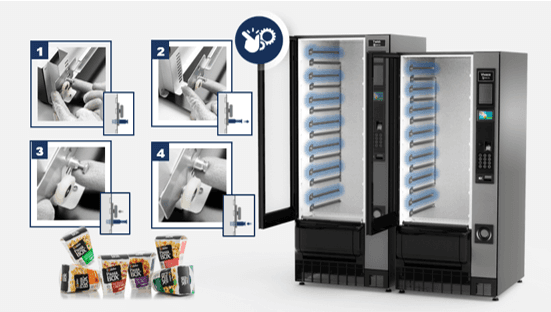 Der Gusto 6 M ist ein kompakter Snack- und Getränkeautomat für Standorte mit begrenztem Platzangebot. Er bietet eine solide Kapazität und flexible Konfigurationsmöglichkeiten.