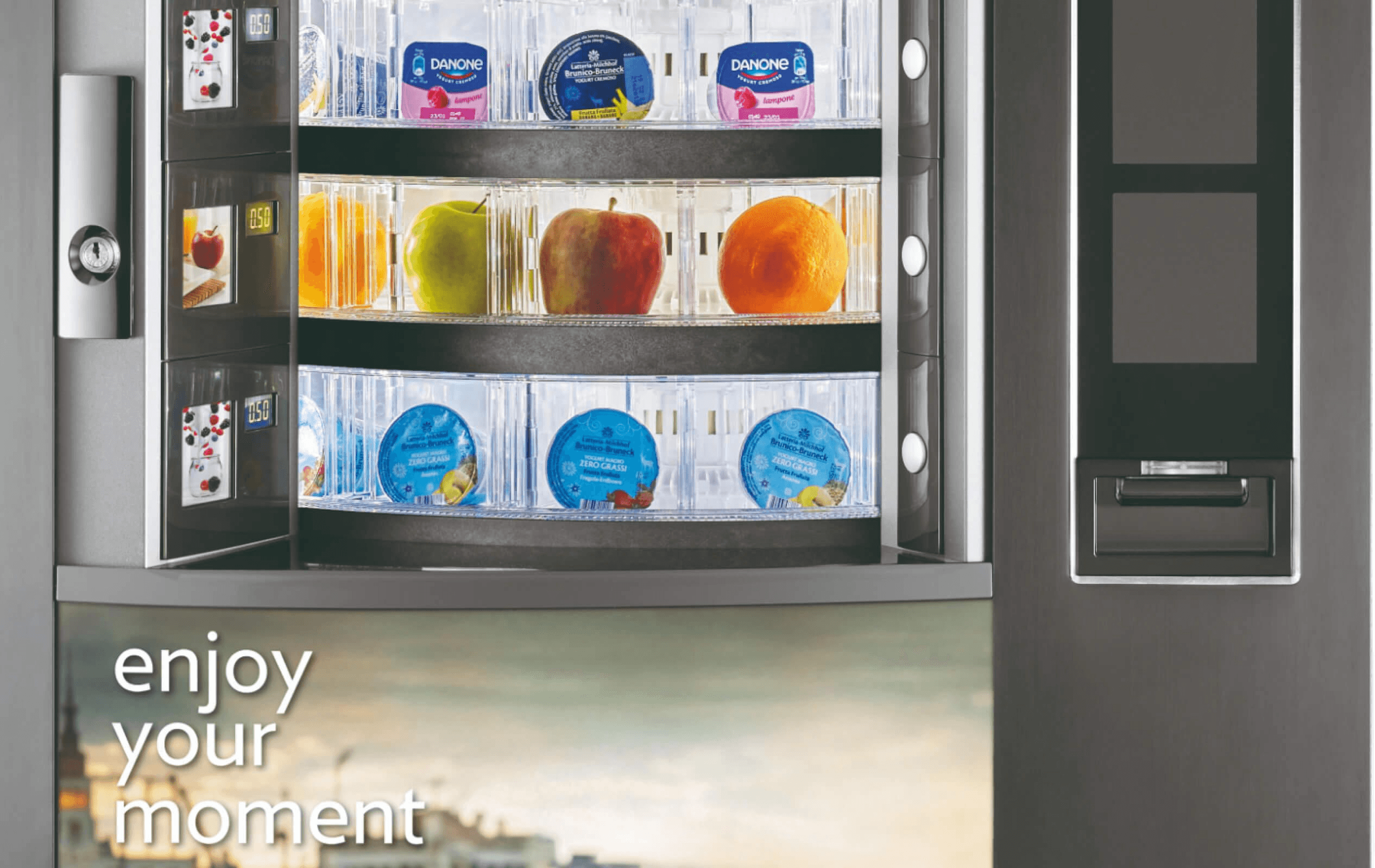 Der Gusto Drum ist ein spezieller Verkaufsautomat mit Trommelsystem für größere Produkte wie Mahlzeiten, Baguettes oder verpackte Lebensmittel. Er eignet sich ideal für Standorte mit Fokus auf Food-Angebote und größere Produktformate.